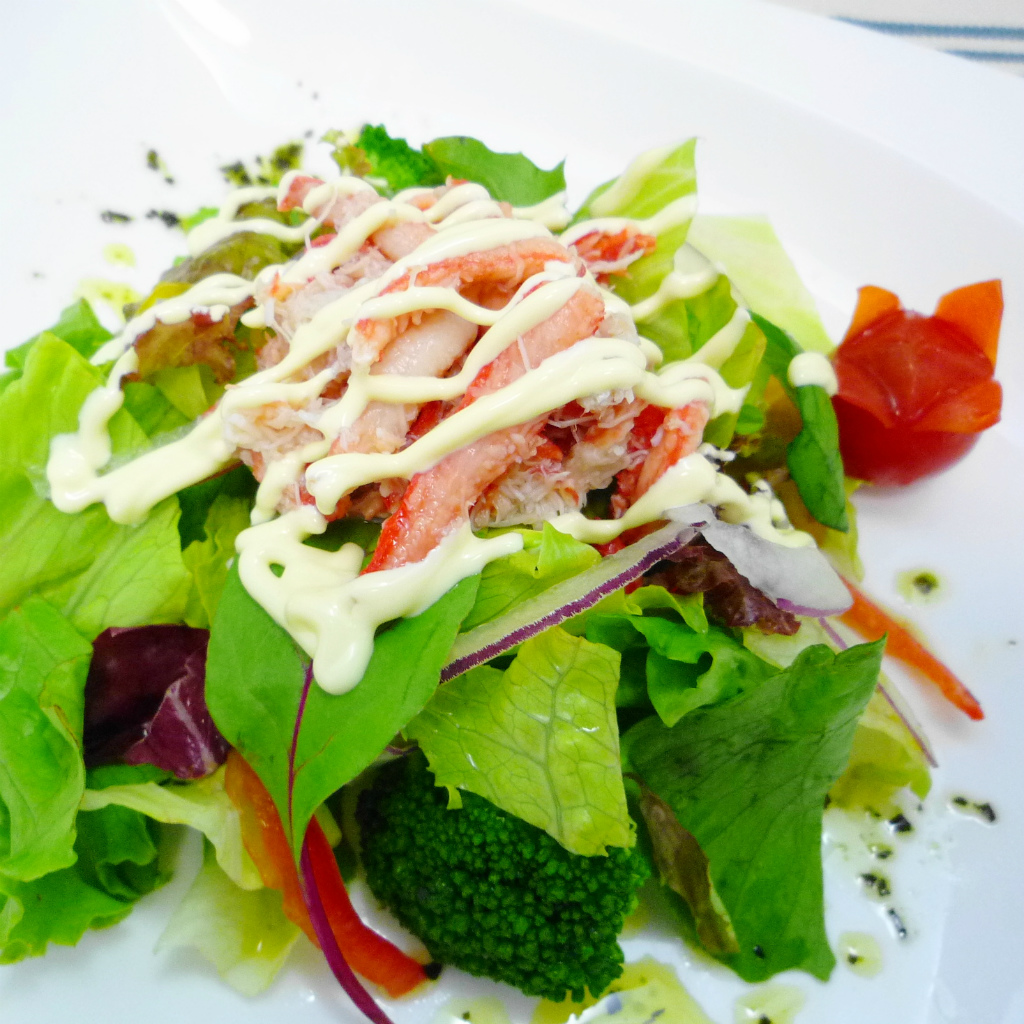 写真では野菜にオニオンドレッシングを紅ずわいがに