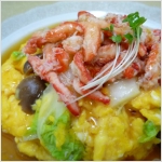 上に紅ずわいがに赤肉をのせて焼き上げてみました。