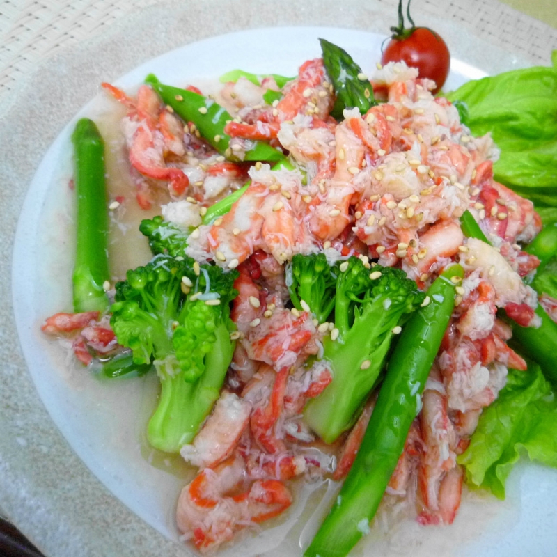 ずわい蟹とアスパラとブロッコリーの炒め物