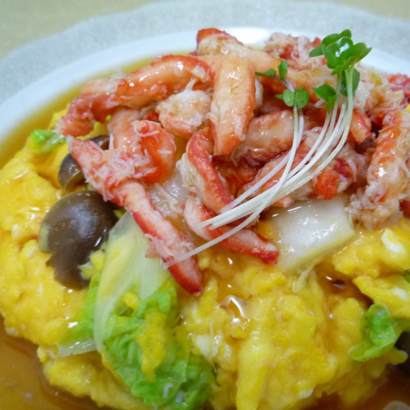 白菜としめじの卵とじ 紅ずわいがにあんかけ