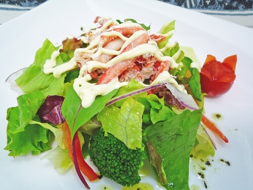 写真では野菜にオニオンドレッシングを紅ずわいがに