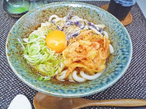 寒い冬にピッタリ! 2色のかき揚げうどん
