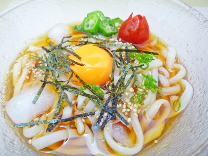 ぶっかけうどん 季節の野菜と卵黄のせ