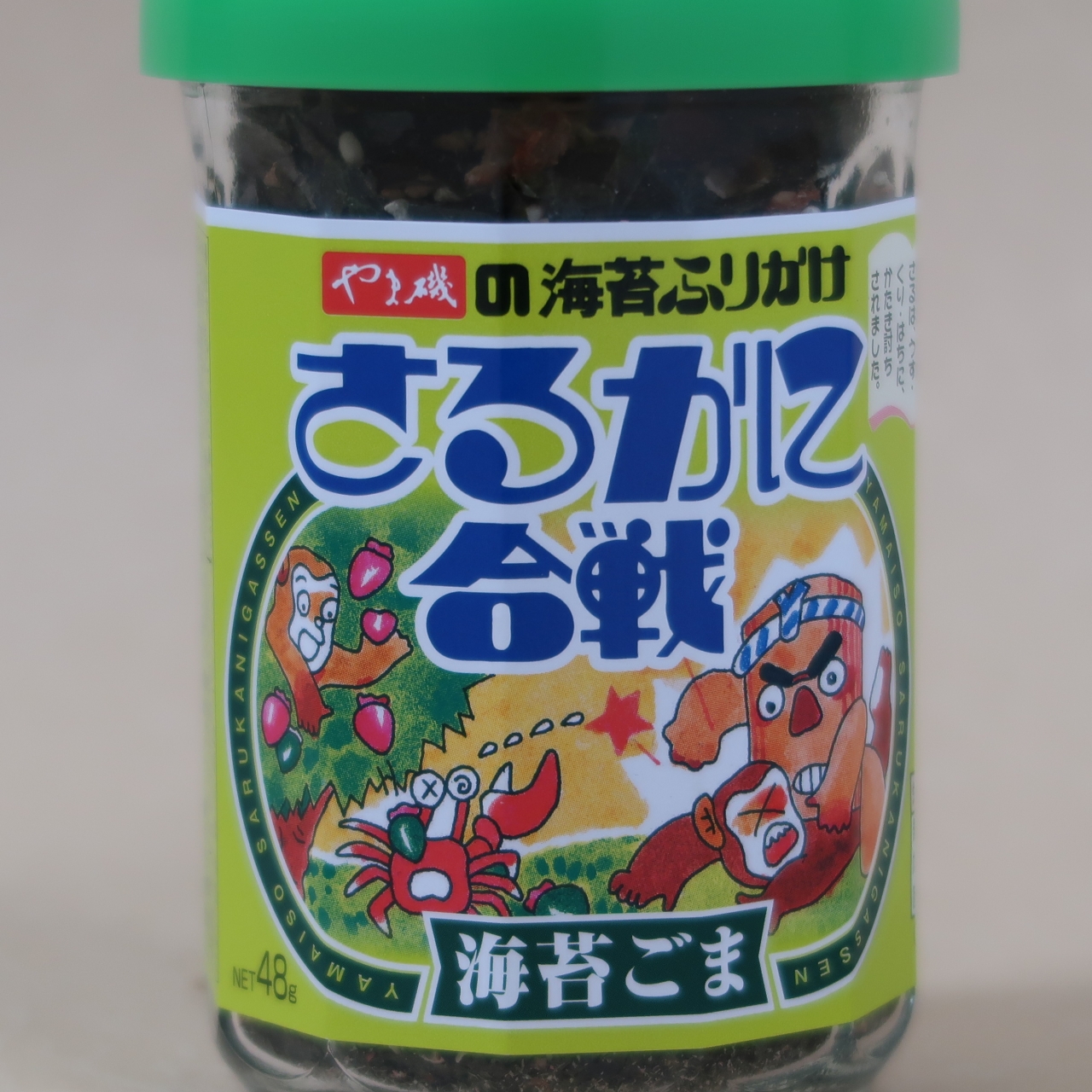 のりの風味が豊かでごまがこうばしいやま磯さるかに合戦は魚介類の旨味が後を引くクセになる美味しさのふりかけです。